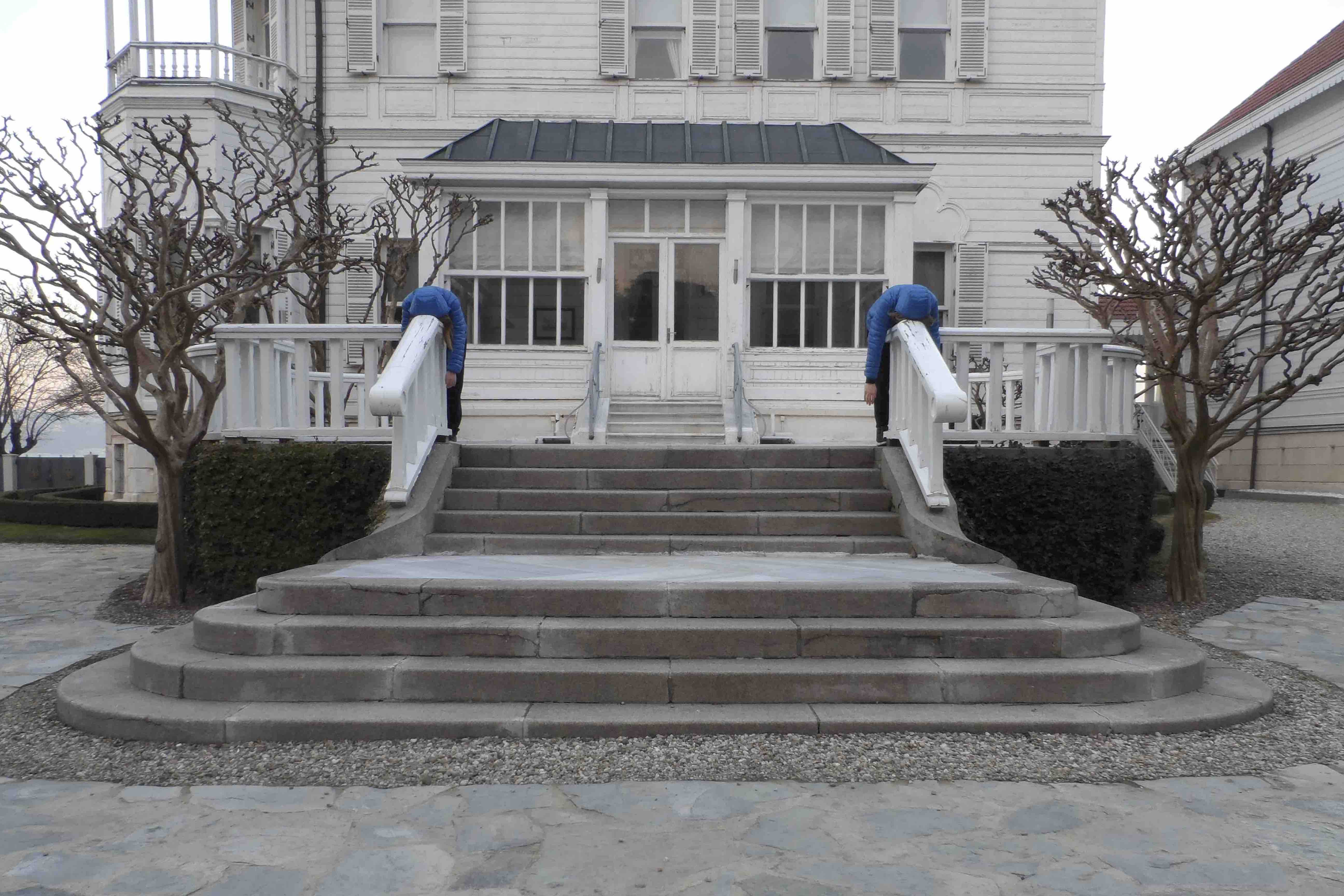 Für Horst & Maria, die aufgrund ihrer immer gleichen Kleidung und ihres immer gleichen Haarschnitts leicht zu erkennen sind, spielen Routinen eine wichtige Rolle: Man trifft sie zum Beispiel immer zusammen an, sie sind grundsätzlich positiv gestimmt, sie unterhalten sich gern mit jedem Lebewesen und sie lassen sich gerne Hände schüttelnd fotografieren. Der Morgen beginnt meist mit einem Spaziergang durch den weitläufigen Garten, dem Schnuppern an Rosen etc., dann besucht man die kleine Kapelle auf dem Gelände und geht danach eine Runde Tennis spielen. Die örtliche Präsenz der beiden Charaktere wird ebenfalls durch Gewohnheiten bestimmt – am Nachmittag finden häufig Exkursionen und Erkundungen statt, man verlässt dabei das Gebiet der Kulturakademie, um in den Dialog mit Kulturschaffenden in Istanbul zu treten. In regelmäßigen Abständen erfolgen auch Einladungen nach Tarabya: Dort bekochen die beiden perfekten Residenten gerne neue Freunde und Bekannte oder sie laden zu einem Vortrag oder einer Filmvorführung in ihr Atelier ein. Diese Einladungen sind immer auch Inszenierungen, Performances in die andere, zum Beispiel Zuschauer einbezogen werden. Die Thematisierung von Routinen und dem Alltäglichen verbindet Horst & Maria mit dem britischen Künstlerduo Gilbert und George, und vielleicht haben sie auch so viele Haare auf ihren Köpfen, weil Eva und Adele Glatze tragen – die größte Differenz zu diesen Parallelerscheinungen ist aber die Tatsache, dass die Charaktere Horst & Maria von einer Gruppe performt werden.